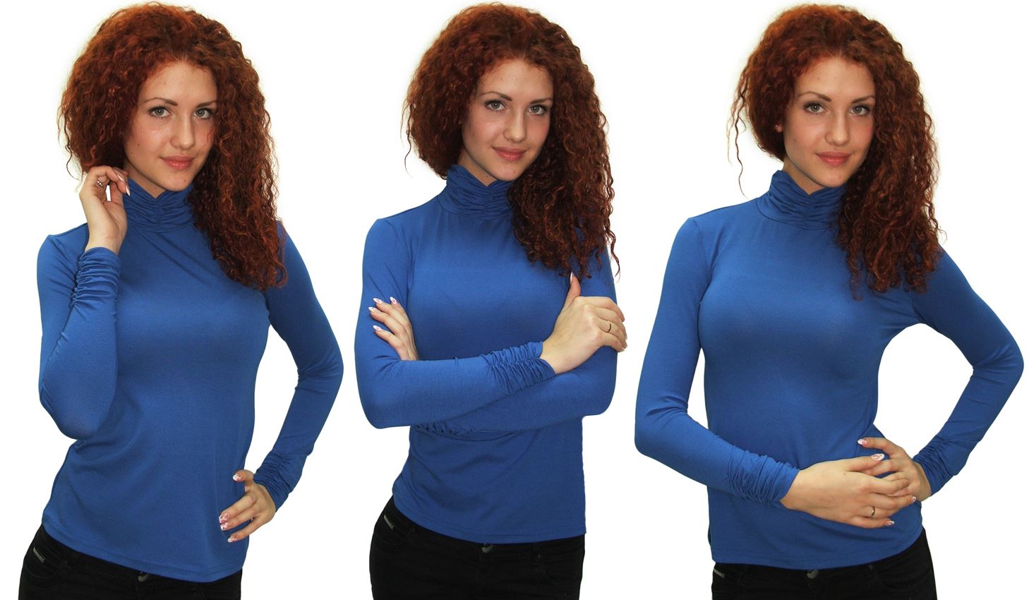 Водолазка с эластичной сборкой по высокому воротнику и по низу длинных рукавов.